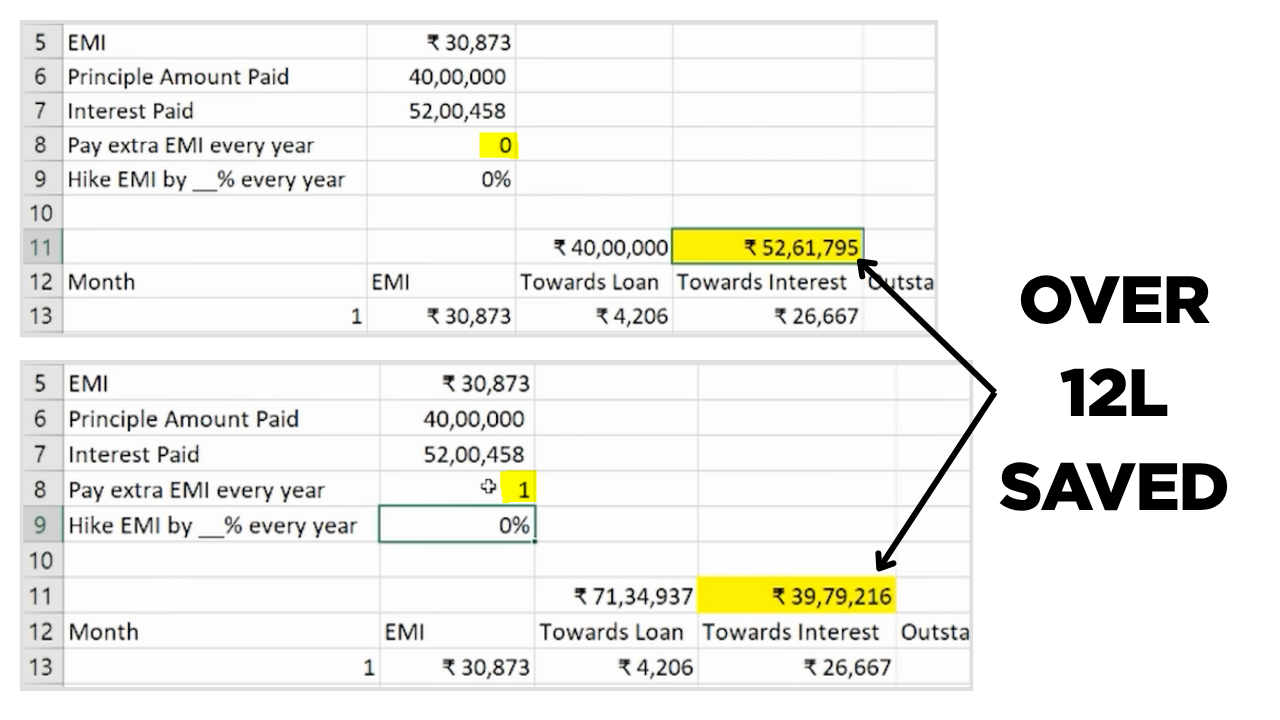 Just that one action brings down your total interest from ₹52 lakh to ₹40 lakh, saving you ₹12 lakh.